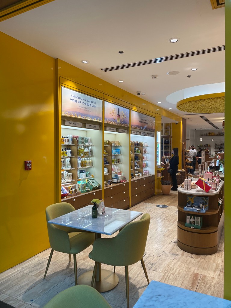 Opened in 2019 by the French group L’Occitane and Chalhoub, L’Occitane Café City Walk is a concept which mixes a beauty-cosmetics store with a café-restaurant. It reminds the 86 Champs store unveiled by L’Occitane and Pierre Hermé in 2017 on the Paris Champs-Élysées avenue, where customers can experience L’Occitane products and taste some creations from the famous pastry Chef.